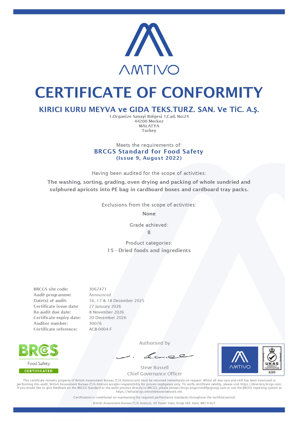 • BRC CERTIFICATES