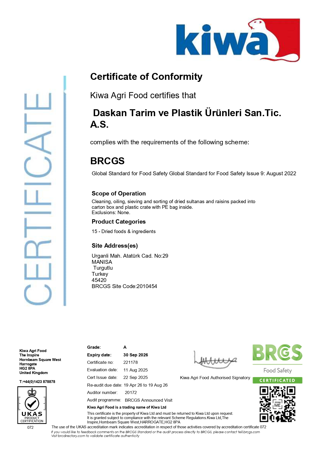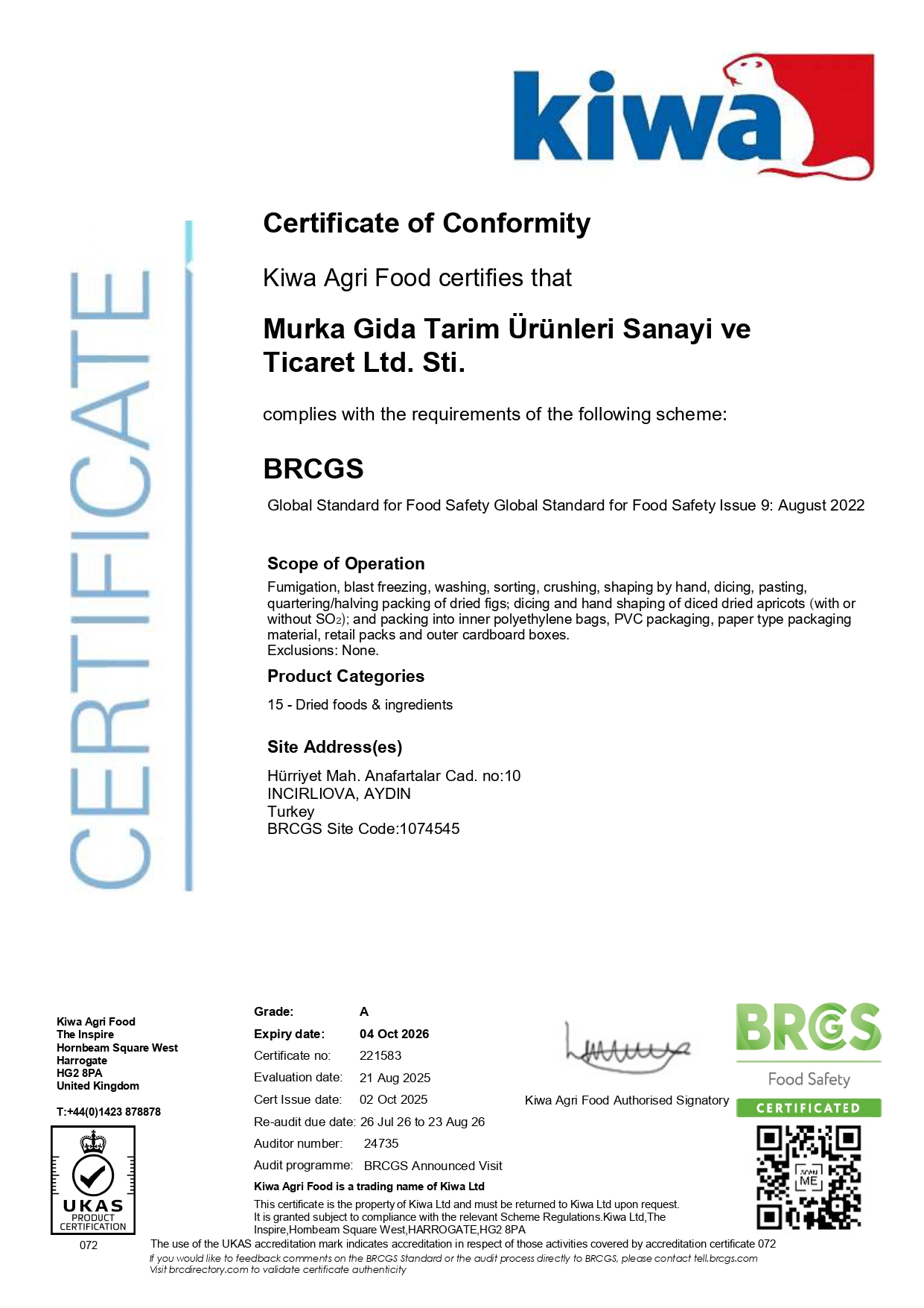 BRC CERTIFICATES